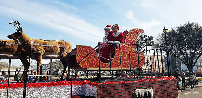 The parade concluded with a float featuring Santa Claus and Mrs. Claus on a sleigh with reindeer and a penguin reminding everyone another holiday was coming up in December.