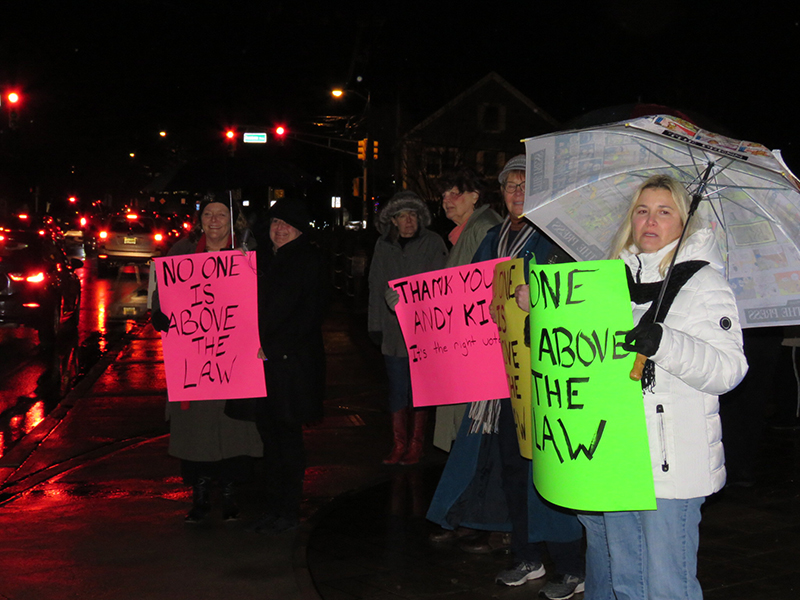 This was part of a nationwide protest called “No One Is Above The Law,” mobilized by Moveon.org. Large cities had hundreds turn out.