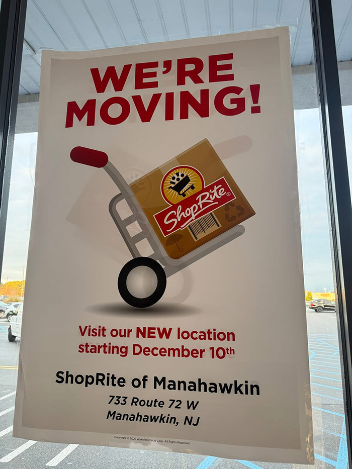 STAFFORD – The sign appeared in the window almost as abruptly as the first cold snap of fall: a bold red proclamation taped to the entrance of the Manahawkin ShopRite that stopped shoppers mid-stride: “WE’RE MOVING!” For longtime customers, it felt like the close of a familiar chapter. For others, it sparked a natural question: What comes next?
