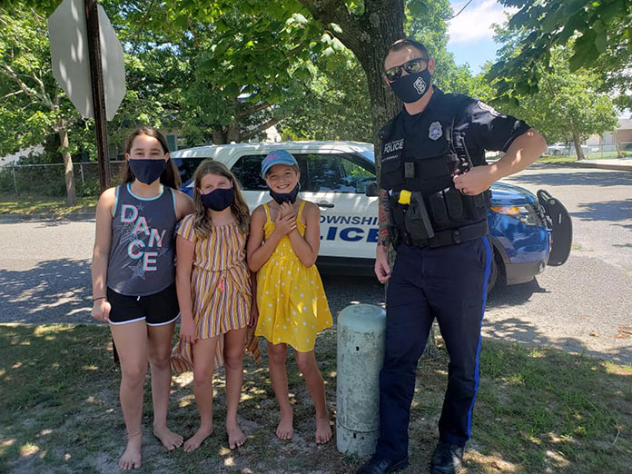 According to resident Gina Hanson, her daughter Meadow Hanson and her friends Sara Rosetti and Sophia Gojdics were braving the sweltering heat, selling lemonade when they were visited by Patrolman Kevin McKnight.