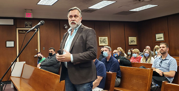 Committeeman Mark Dykoff spoke about the removal of waste materials from the aged nuclear power plant saying, “it was critical to get from wet to dry. Can you explain what happens when you get all these (spent fuel) rods out of there?”