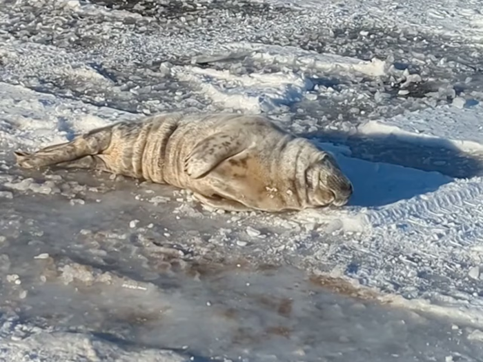 The female seal apparently traveled from the beach along a public access path and onto Long Beach Boulevard, where a passerby spotted it around 7 a.m. on February 24 and alerted police.