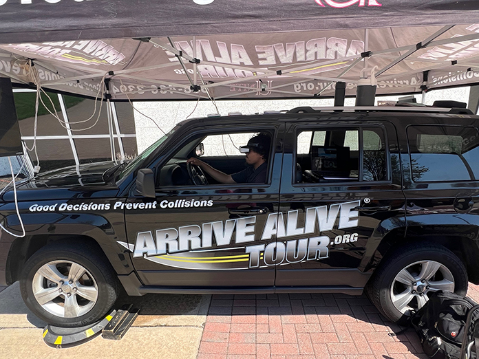 All 11th-grade physical education classes were allowed to engage with a distracted driving simulator provided by UNITE’s Arrive Alive Tour. Under the guidance of Jalen Burress, a program representative who resonated with the students, they embarked on a virtual journey behind the wheel.