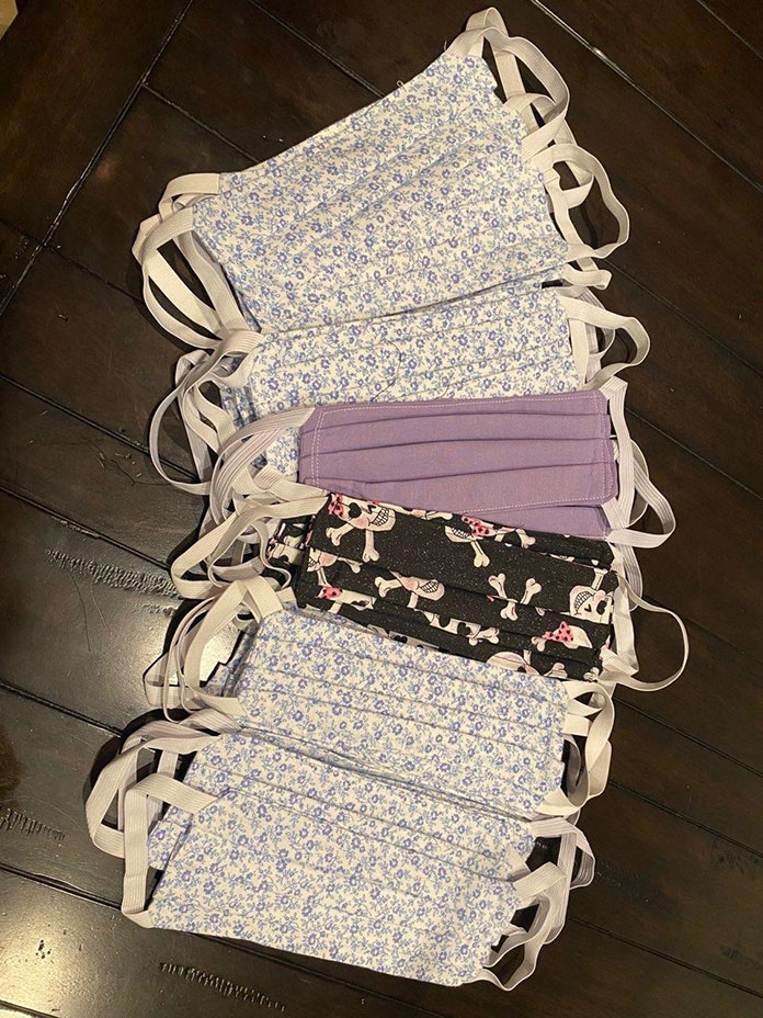 Students from Julie Yonney-Kriebel’s Clothing Construction & Fashion Studio, as well as their friends and family members, have been sewing cotton face masks from home. Headbands were added to help take the pressure off wearer’s ears.