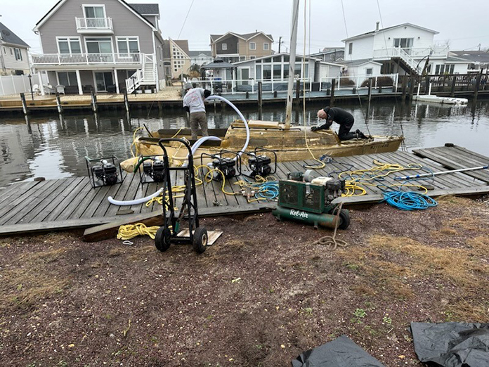 TOMS RIVER – Township officials have called in towing services to remove a sunken and abandoned vessel that’s been in a local lagoon for a year.