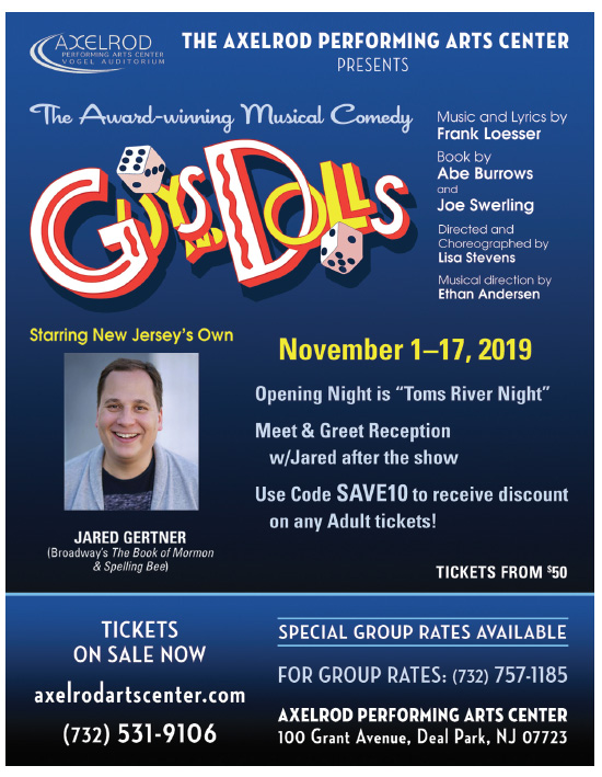 The show will run from Nov. 1-17 at the Axelrod PAC at 100 Grant Ave. in Deal Park. For more information, visit axelrodartscenter.com/guys-and-dolls-axelrod.