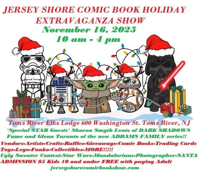 The Jersey Shore Comic Book Holiday Extravaganza will run from 10 a.m. to 4 p.m. at the lodge on Washington Street. Organizers say the event will offer a mix of comics, collectibles, artwork, toys, crafts, and raffles, along with appearances by Sharon Smyth Lentz of Dark Shadows and Glenn Taranto from the new Addams Family series.