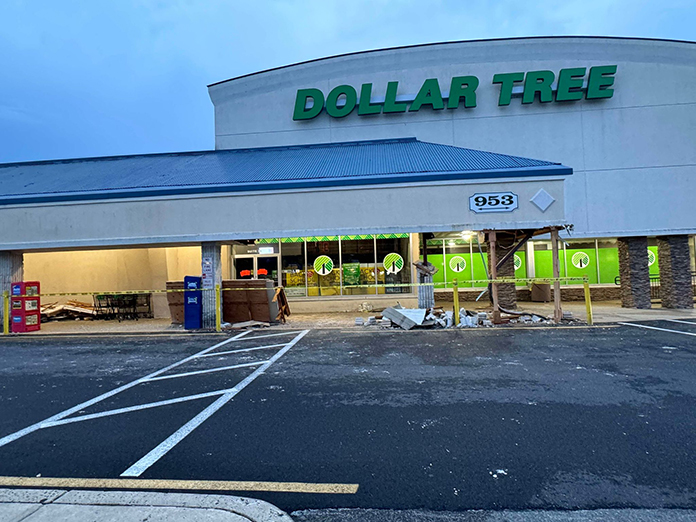 TOMS RIVER – The Dollar Tree on Fischer Boulevard remains closed after a woman lost control of her vehicle and smashed into a major support beam, sending police and emergency crews to the scene.