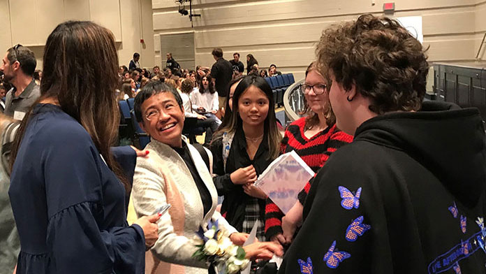 TOMS RIVER – Perhaps it was her dedication to recording the truth that made Maria Ressa take pictures from the stage at High School North. For most of the morning, people were taking pictures of her.