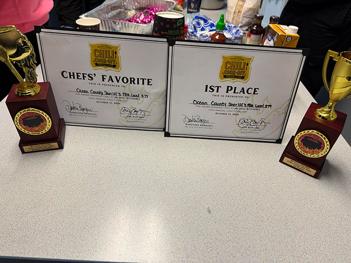 TOMS RIVER – The heat was on at the 10th Annual JBJ Soul Kitchen Chili Cook-Off, where Ocean County Sheriff’s PBA Local #379 took home first place honors. Lt. Jamie Phillips and Sgt. Robert Stark served up what judges called the best chili of the day.