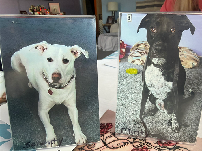 Mint and Serenity still search for her. Mint walks through the house crying, sniffing her bed. Serenity has become quiet, watchful. “When you hug one of the dogs,” Sandy said, “it feels like you’re hugging her.”
