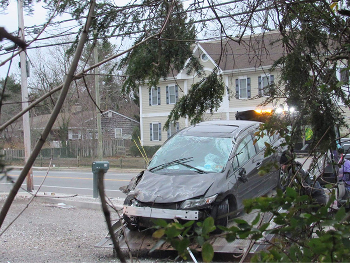 The crash took place on December 8 at around 7:30 a.m. at the intersection of Lakehurst Road and Camelot Place. Richard Sheridan, 68 of Bayville, told police he was reaching for a bottle of water when his vehicle drifted off the road to the right, striking a utility pole and lighted sign before overturning and sustaining extensive damage.