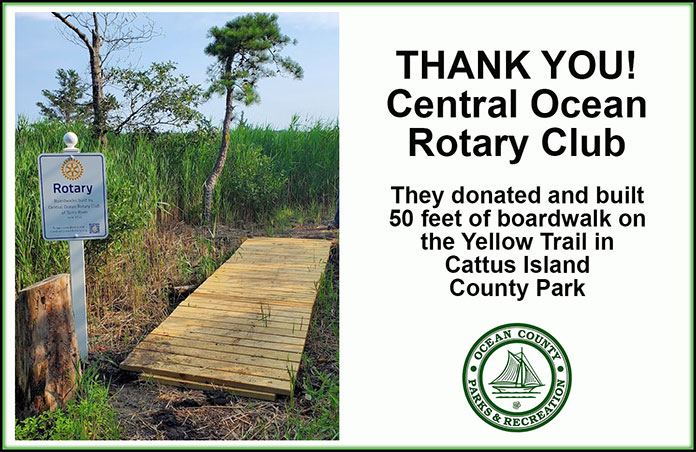 TOMS RIVER – The staff at Cattus Island County Park are truly grateful to the members and friends of the Central Ocean Rotary Club who donated and built 50 feet of boardwalk on the Yellow Trail in the park.