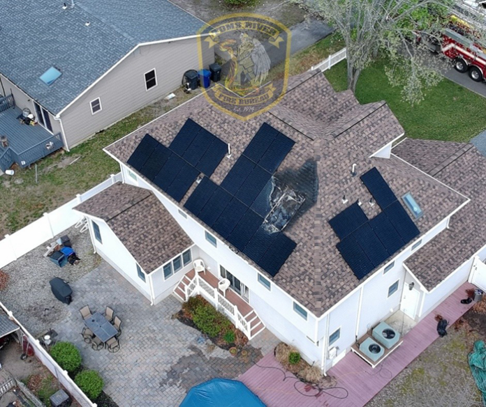 The first crews to arrive found smoke and fire showing from the roof area of the two-story house and began extinguishing the blaze while searching for its source. Investigators later determined the fire started in a solar panel system installed on the rear section of the roof, according to the Toms River Bureau of Fire Prevention.