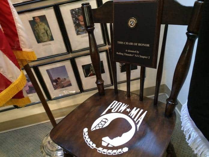Sadly, most people don’t think about the prisoners of war and missing in action soldiers, said Charles Webster IV, vice president of Rolling Thunder Chapter 2. That’s why they’ve been placing a Chair of Honor at various locations in Ocean County. The empty chair represents the memory of those who never came back from war – an empty chair at the dinner table at homes across America.