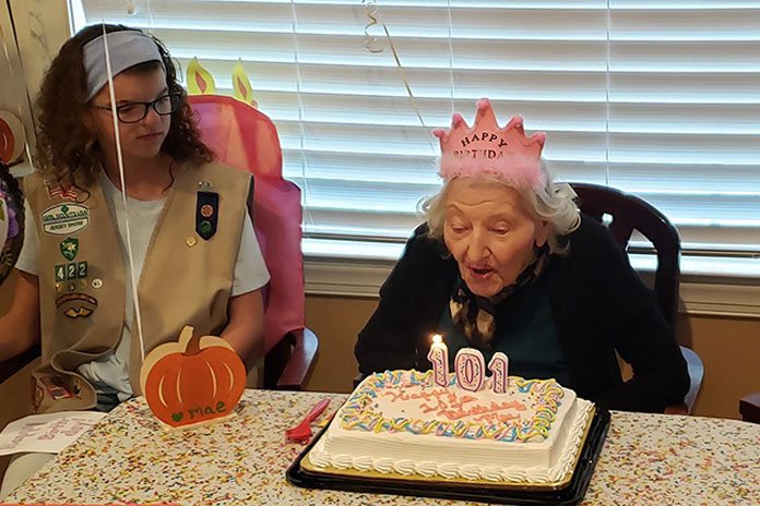 She celebrated her 101st birthday on Sept. 9 at Alcoeur Gardens Residential Alzheimer’s and Dementia Care Community of Toms River proudly.